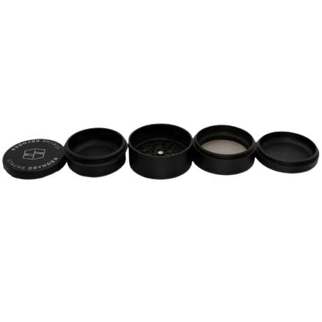 This 5 chamber grinder is not your average grinder. The Grynder features micro rounded teeth that make grinding your flower effortless and prevent flower from caking up inside. The micro teeth, added to the large flower chamber and Neodymium Magnets allows you to place “full sized herbs” in the Grynder delivering softer fluffier herbs. The silky smooth threading offers ease of assembly/disassembly. The top lid of the Grynder unscrews to reveal a secret storage chamber for excess material. Everything you need to effortlessly grind your flower. Includes pollen scraper and cleaning brush